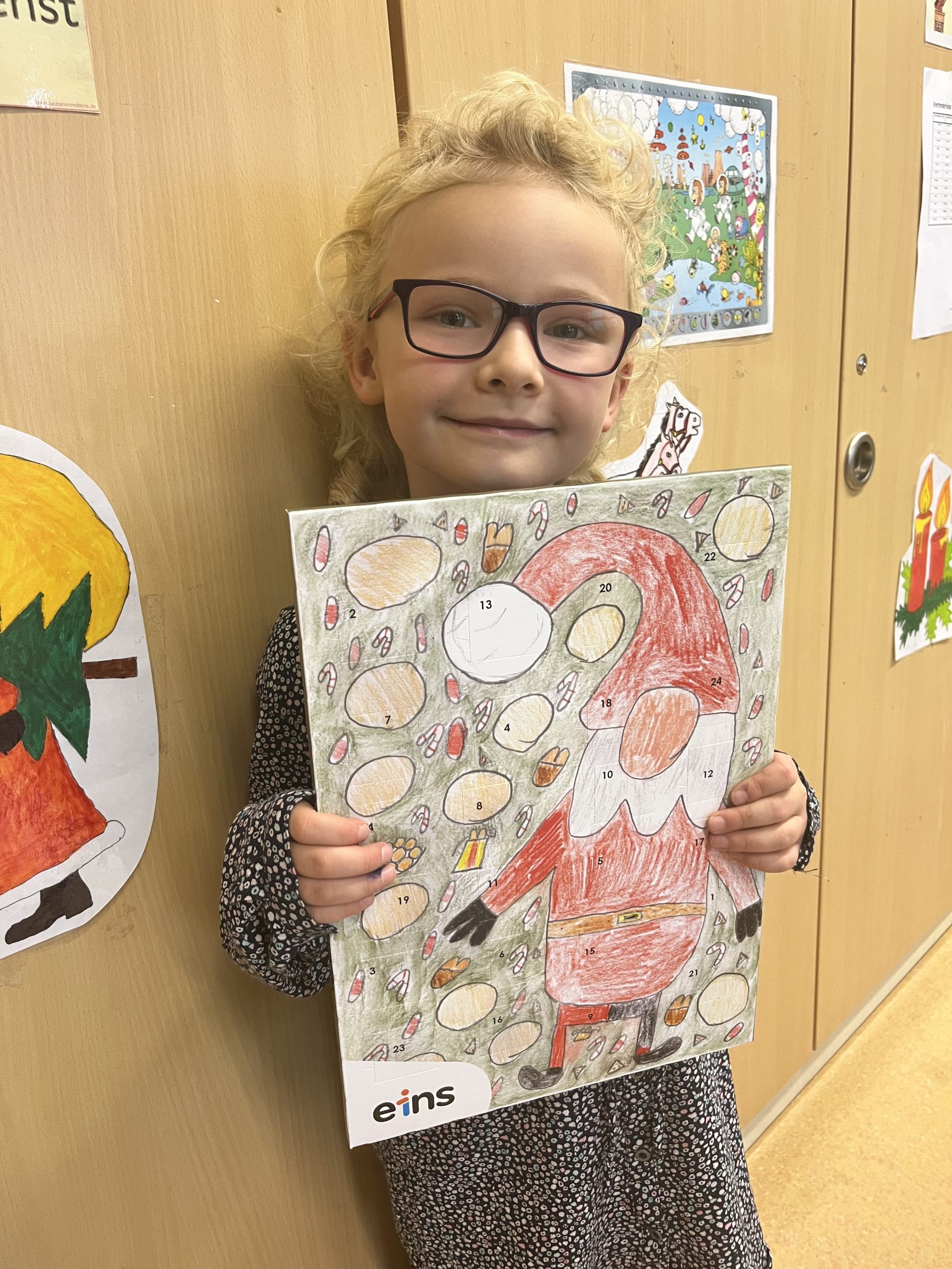 Wie bereits im vergangenen Jahr hat die Klasse 3b am Malwettbewerb für das Cover des Adventskalenders von eins teilgenommen. Auch in diesem Jahr hat es nicht für den Hauptpreis gereicht, aber es haben alle Kinder der Grundschule Hinterhain einen Schokoladenadventskalender mit dem Siegerbild als Trostpreis bekommen. So war die Enttäuschung nur halb so groß. Vielleicht klappt es im nächsten Jahr mit dem Hauptgewinn!